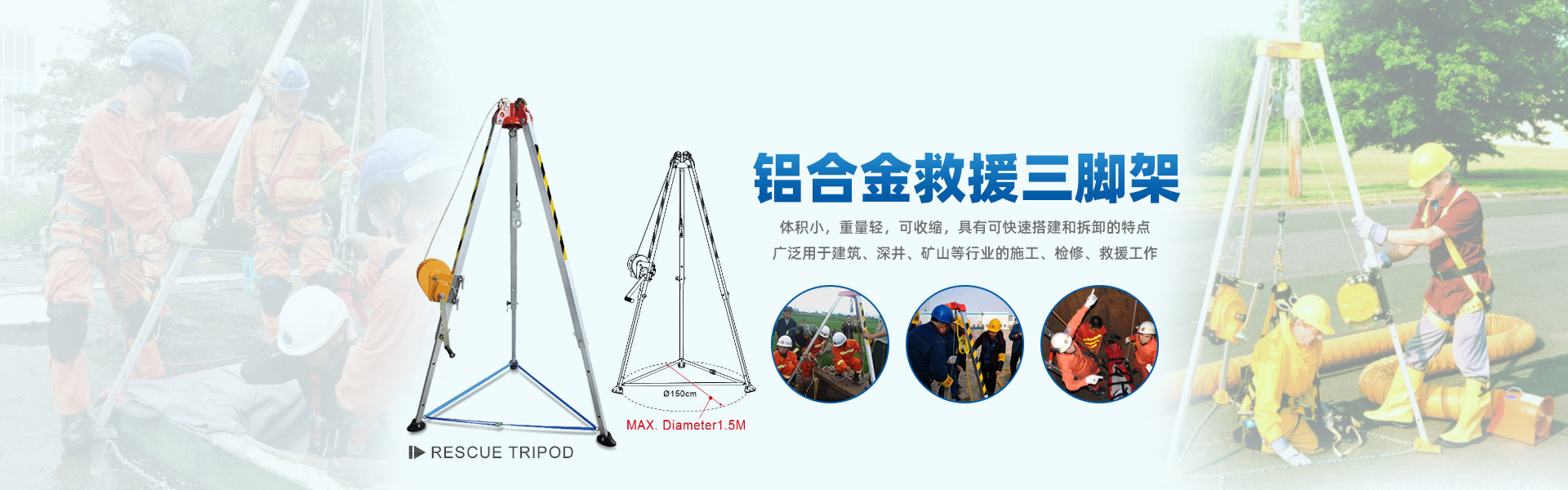 冠航消防救援三腳架是應急救援、安全防護器材中的一種,在深井、坑洞、山地密閉空間應急救援工作中起重三腳架是不可缺少的吊裝工具